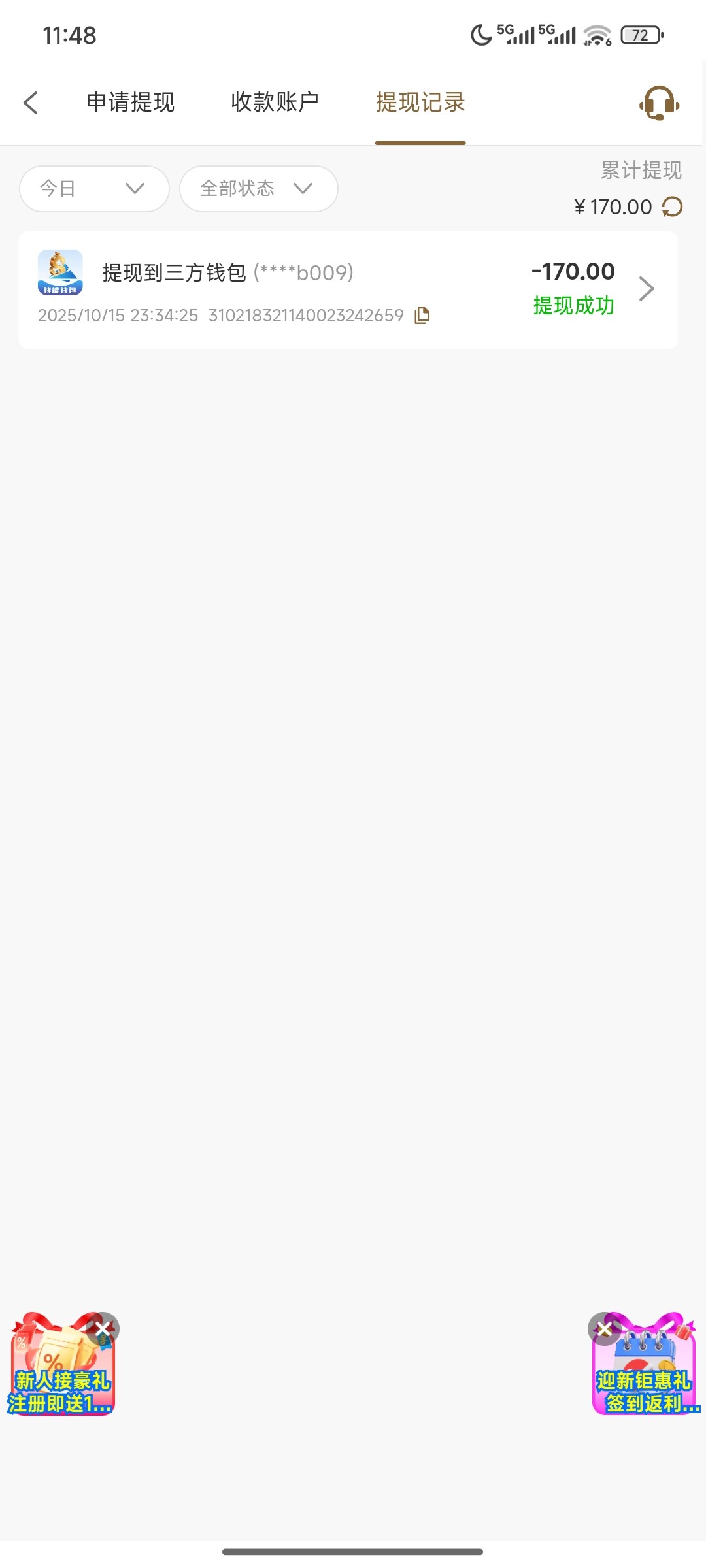 前面打到80去下了40的百家乐,120,回来看活动不能下百家乐,然后就白给了,刚刚登录上去领反水随手一拉进个1.4的麻将,退出来充50,刷完流水开免费提了170!感谢了
