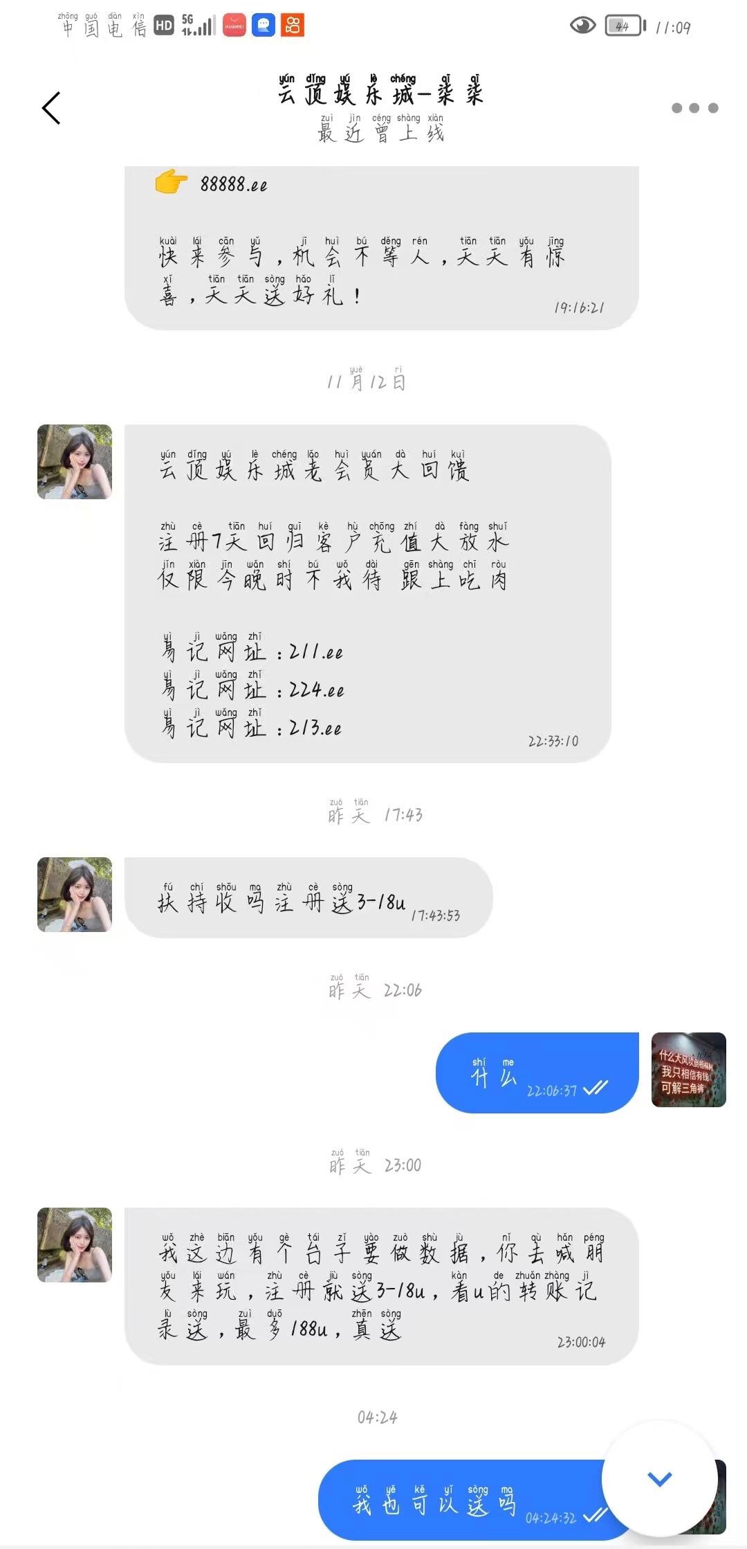 问了专员现在还有名额,用过u的基本都送,加旺旺专员就行了241128365她会给你发网址教你领取的看u活跃来送的,我送了5u没打出来她说要100u才能提我最高打到了56u可惜了,人多容易黄快去,看看有老哥能吃上吗