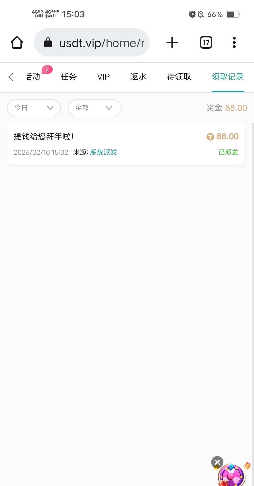 u台历史存款回馈 我领了88 玩了一个月左右 玩过的自己去看看 usdt.vip