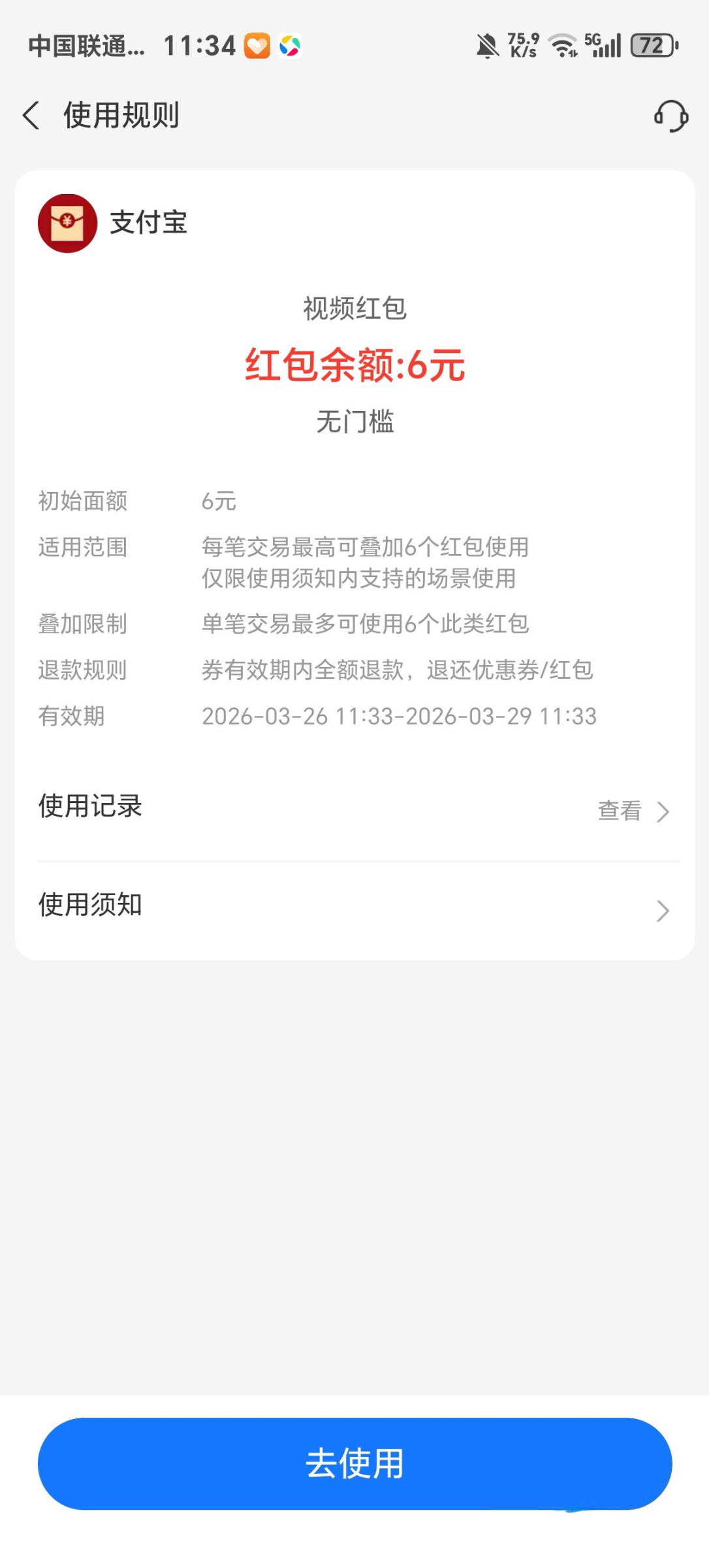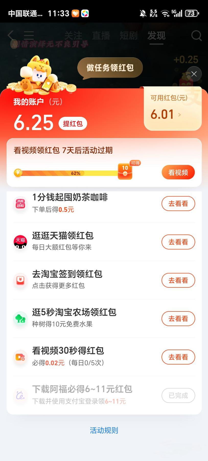 支付宝视频送6元