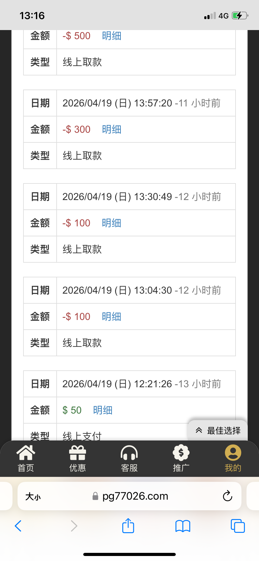 充值100只能提288真是个贱逼 反水都六百多 加上杂七杂八的有一千多 不知道提了之后优惠还能不能领了