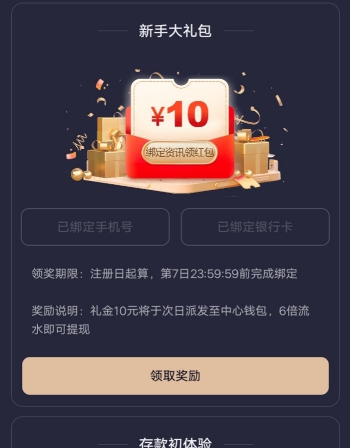 新用户注册 绑手机号/银行卡
