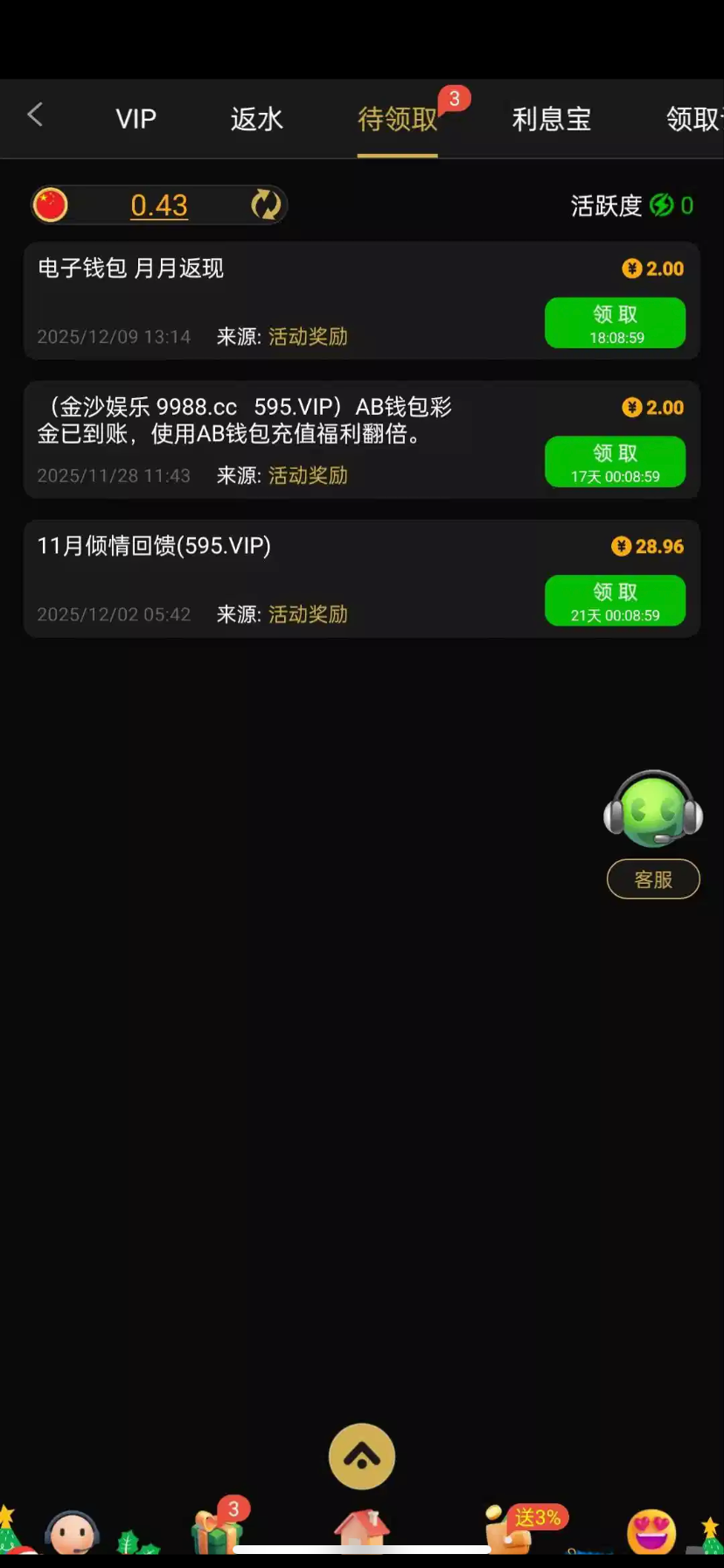 3、本站资源均来自互联网-需自行判断与负责。每日更新(论坛内容仅用于 薅羊毛 白嫖 论坛严禁充值娱乐 严禁任何形式推广 发现一律提交当地公安 )感谢您的支持!