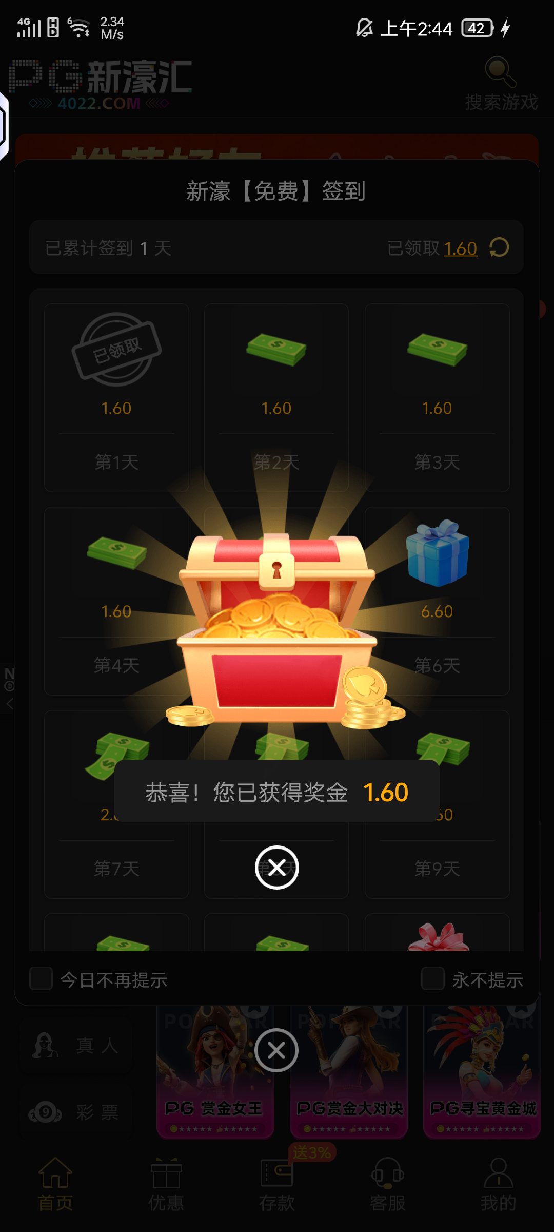 PG新濠汇特邀签到送400+后续 白菜