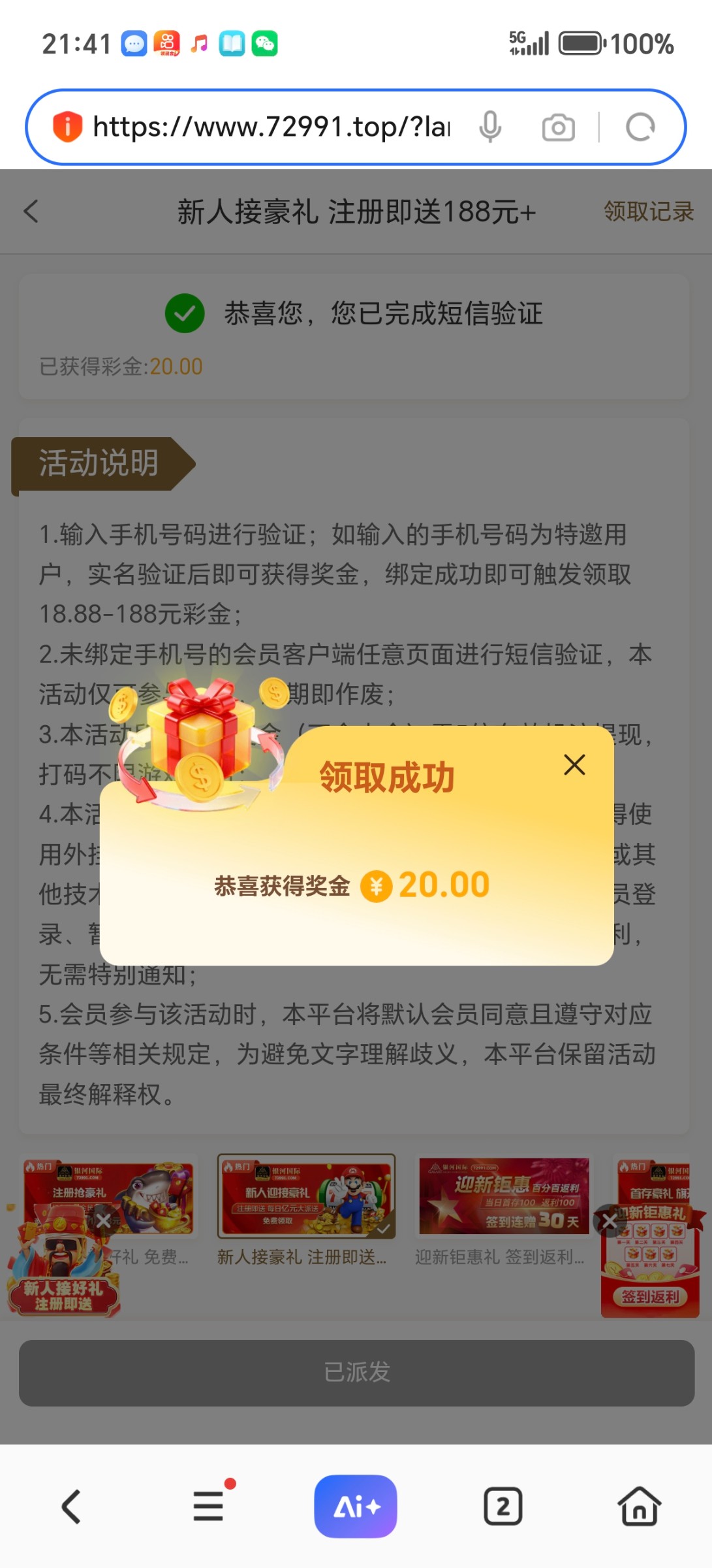 72991.com我是刚才接到电话的,大家可以去碰下,验证短信就行