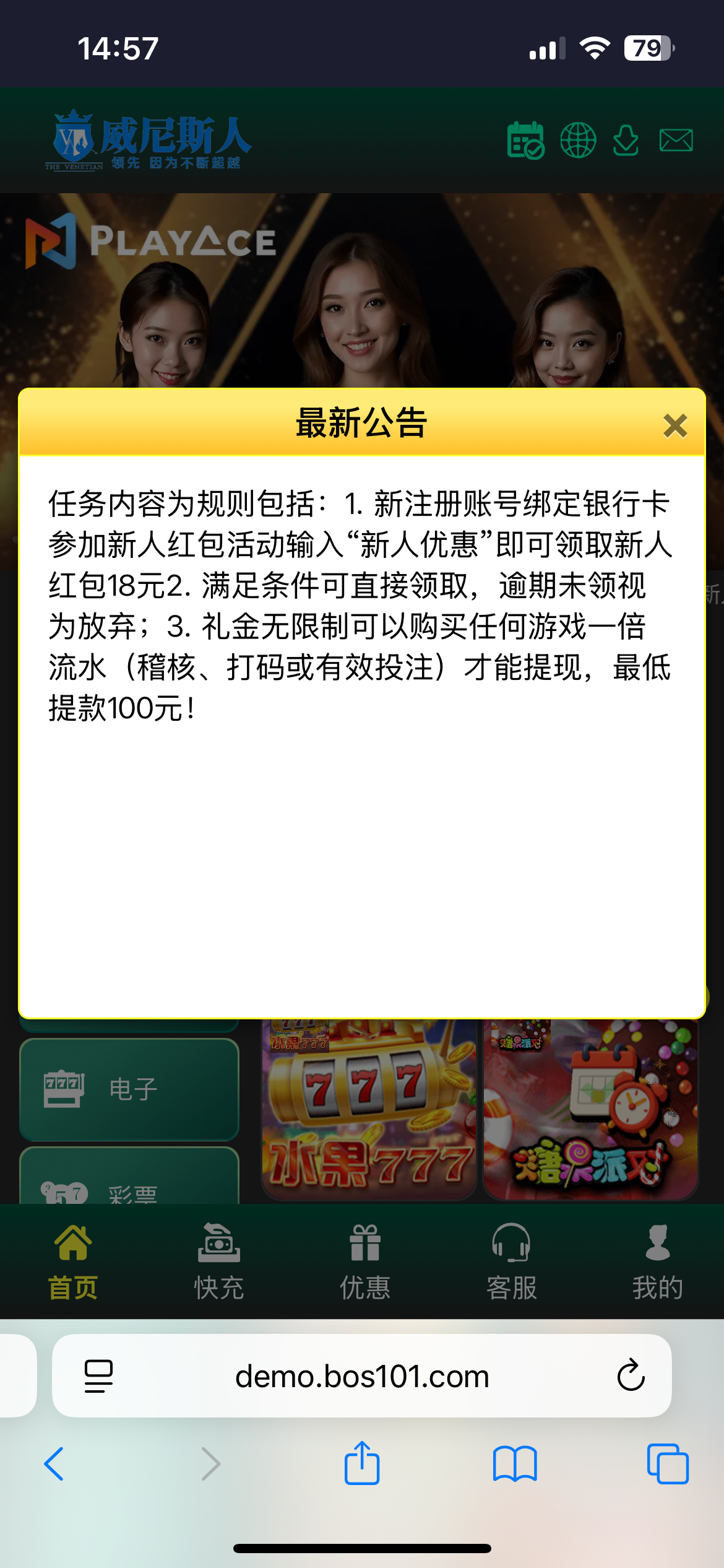 【威尼斯人】注册绑卡领取18元红包