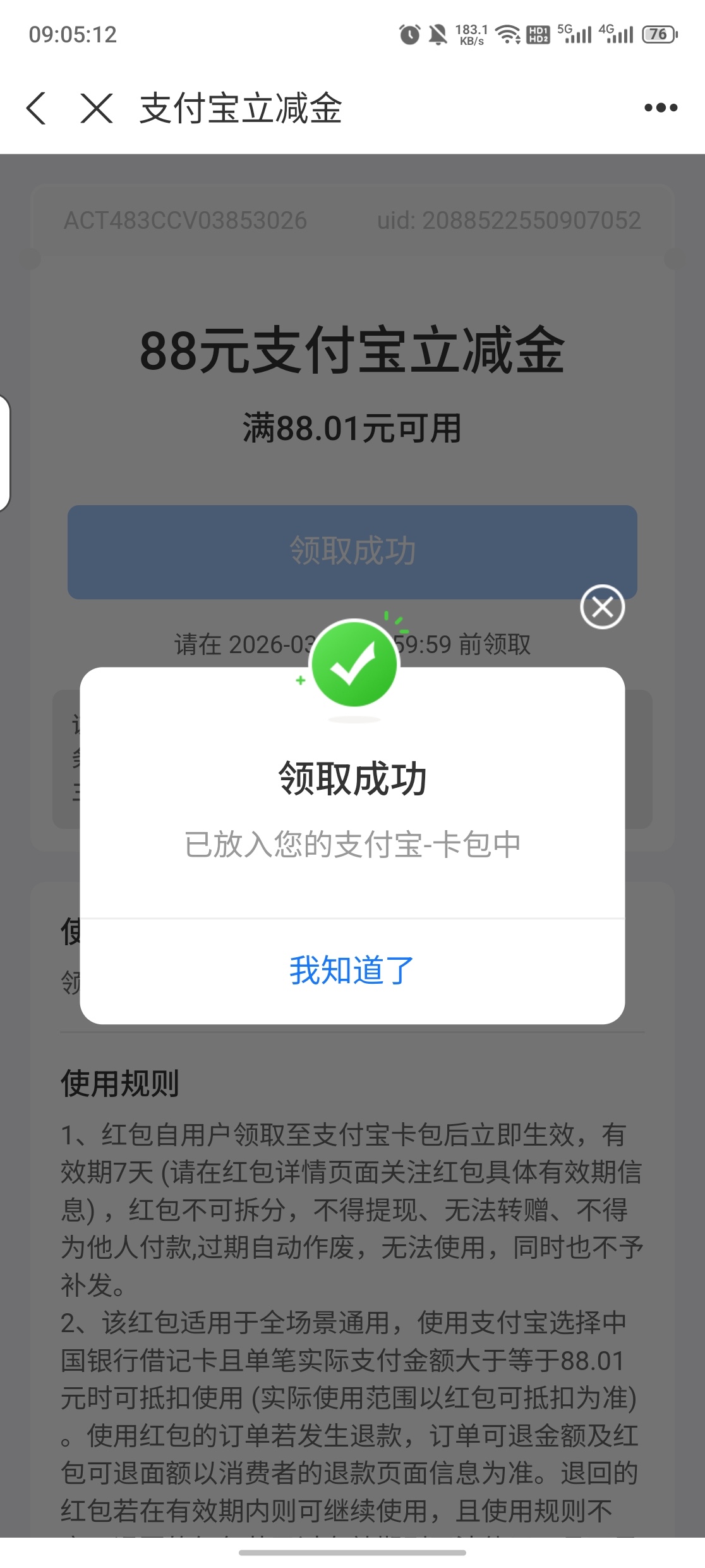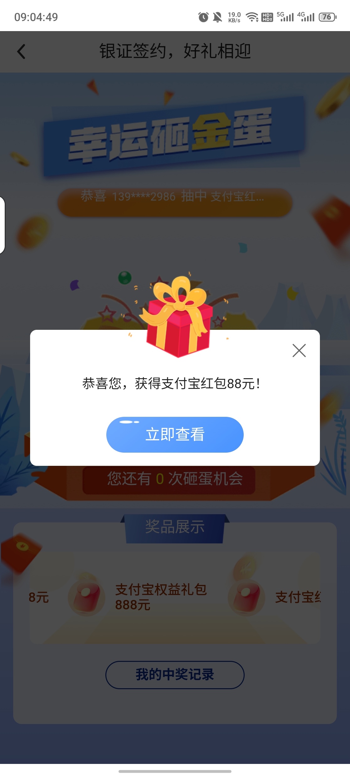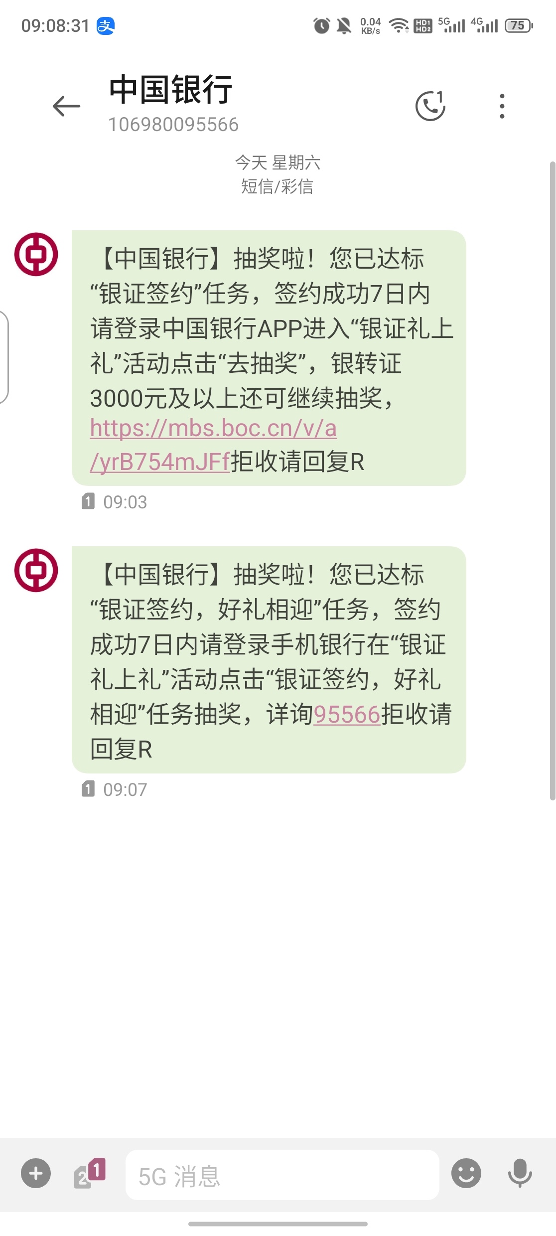 我是昨天做悬赏来的证券户绑定的中行卡,今天收到短信可以在中行app抽奖,必中88立减金,0撸100+没钱吃饭的老哥们去试试